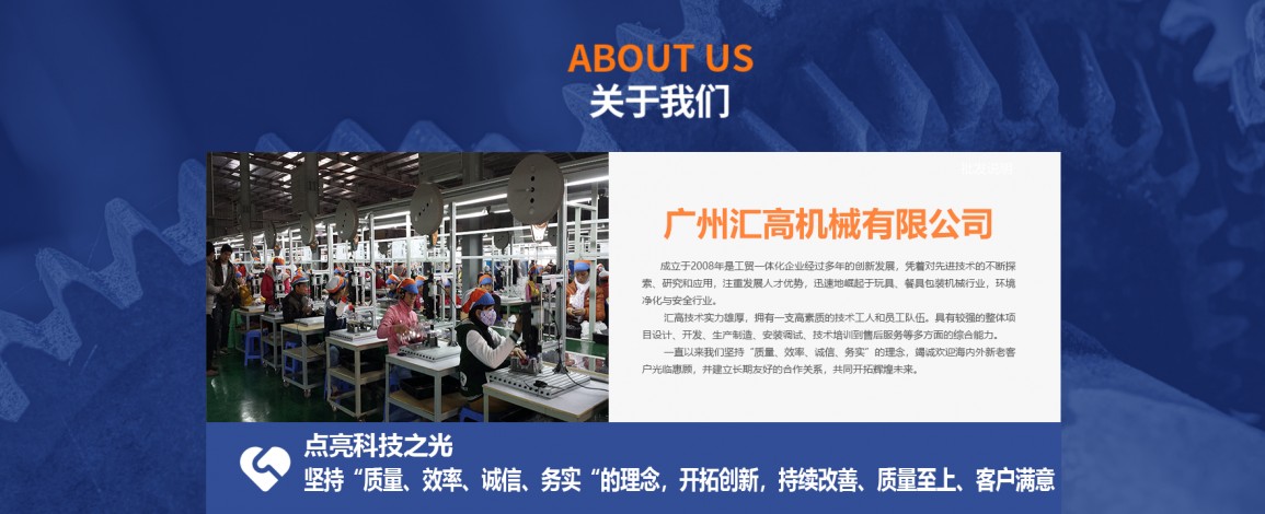 廣州匯高機械設備有限公司,成立于2008年是工貿一體化企業經過多年的創(chuàng)新發(fā)展,憑著對先進技術的不斷探索、研究和應用,注重發(fā)展人才優(yōu)勢,迅速地崛起于玩具、餐具包裝機械行業,環(huán)境凈化與安全行業。
